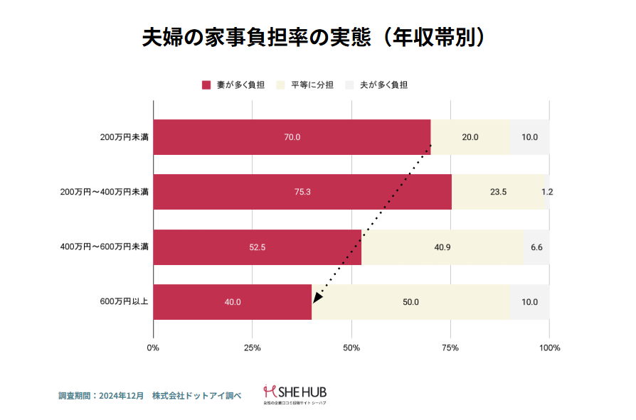 株式会社ドットアイ(本社:東京都中央区、代表取締役:大崎恵理子)は、女性向けクチコミ転職サイト『SHEHUB(シーハブ)』において、共働き世代の家事・育児負担の実態の把握を目的として、共働き世代933名を対象にアンケート調査を実施しています。この度、2024年12月~2025年2月に実施した調査の結果がまとまりましたので、概要をお知らせいたします。