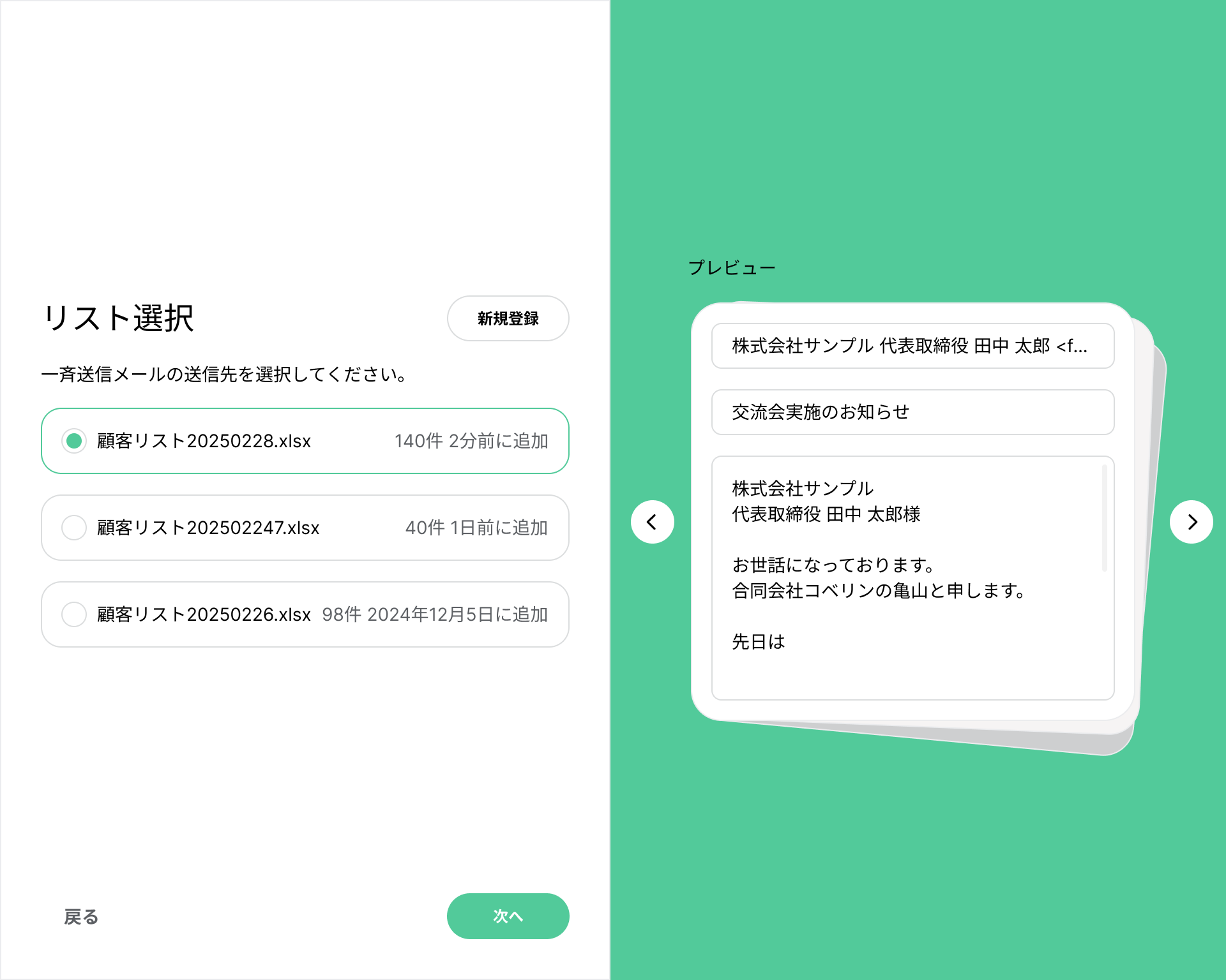 - CSV/Excelリストを読み込み、個別最適化された内容を一斉送信