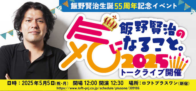 さらに飯野賢治生誕55周年記念プロジェクトの一環として、大人気のトークライブ「飯野賢治とヨシナガの『気になること。』」の番外編を2025年5月5日に一日限りで復活開催します。