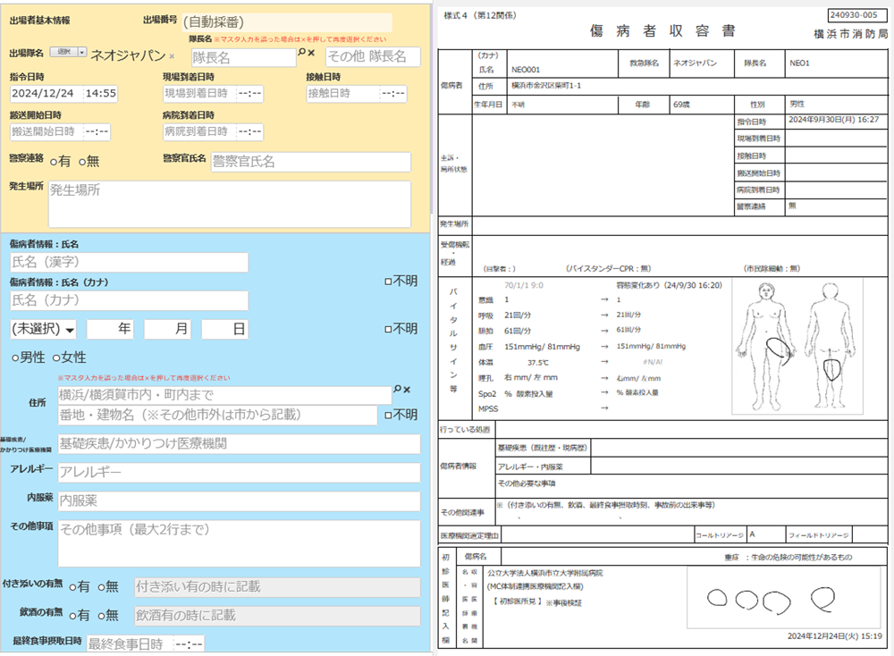 左:AppSuiteで作成した画面 右:紙の傷病者収容書