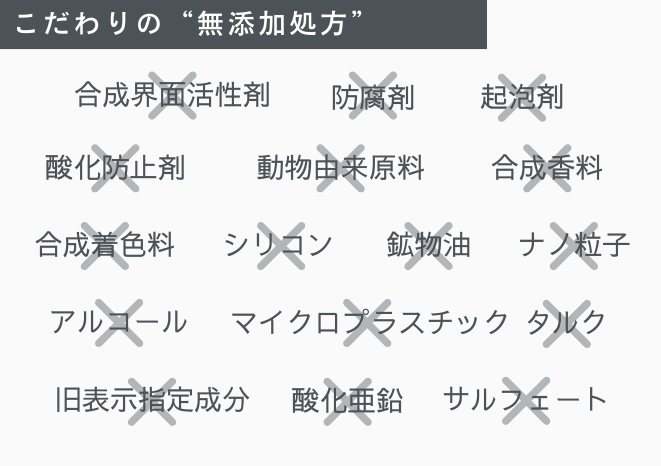さらに、お塩は防腐効果が働くため、肌に刺激を与える可能性のある防腐剤等の添加物は一切不使用。