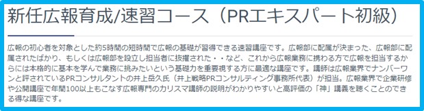 ■定番で人気の講座「新任広報育成講座 速習コース」とは 企業と広報担当者の悩みを解決へ導く