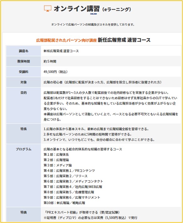 ■オンデマンド「新任広報育成講座 速習コース」の講座概要