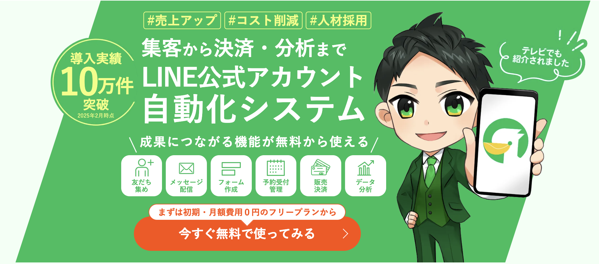 LINEを使った顧客対応・予約・販売などを一元管理できるため、業務の効率化や売上アップを支援します。