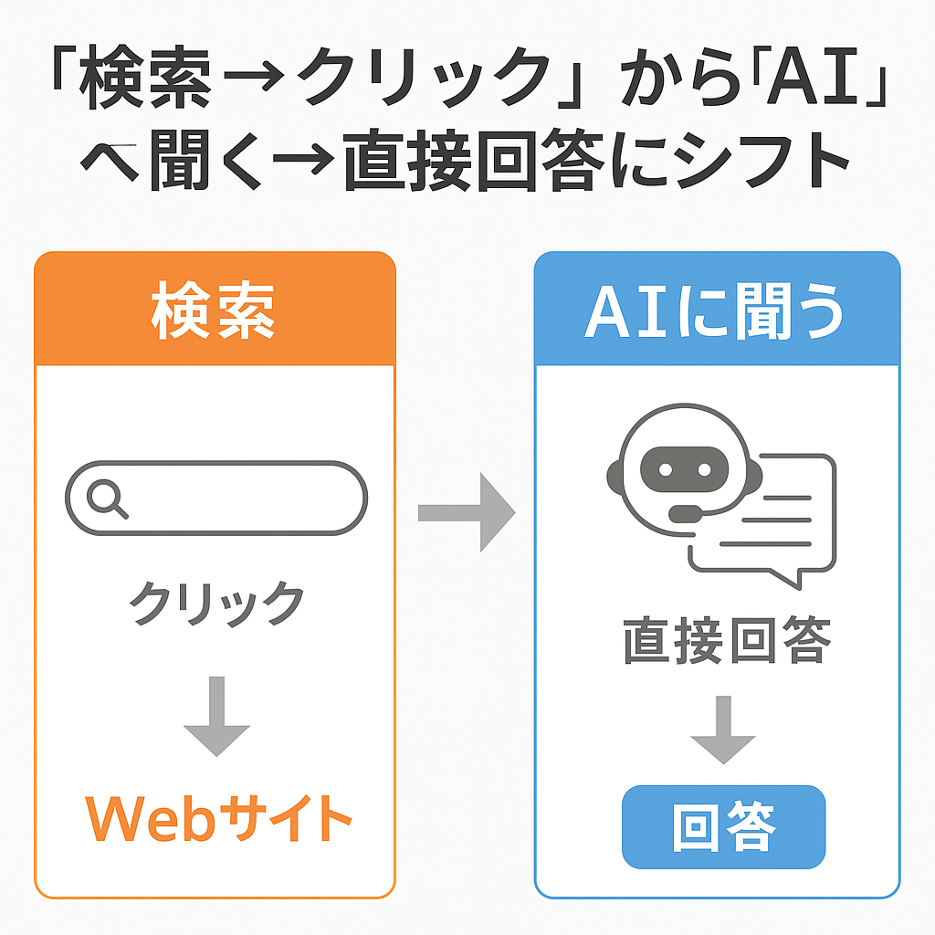このような問いに対し、AIが“回答”を出す中に事業者名や所在地が出るか否かが、集客の成否を左右する時代が到来しています。