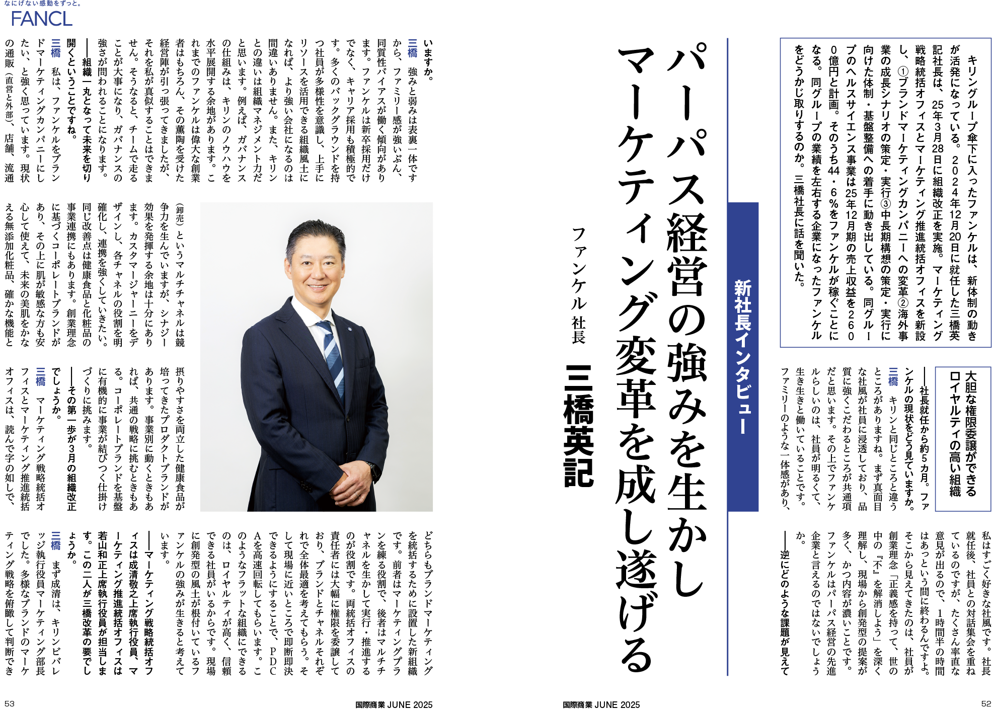 キリングループの傘下に入り新体制になったファンケルの新社長にインタビューしました。