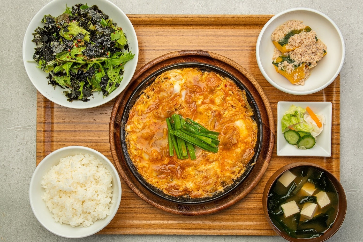 2月限定メニューの他にお勧めなのは「鉄板豚キムチの卵とじ」。キムチの程よい辛さを卵で包みこんだ熱々メニューです。体の芯から温まる冬にぴったりな定食です。