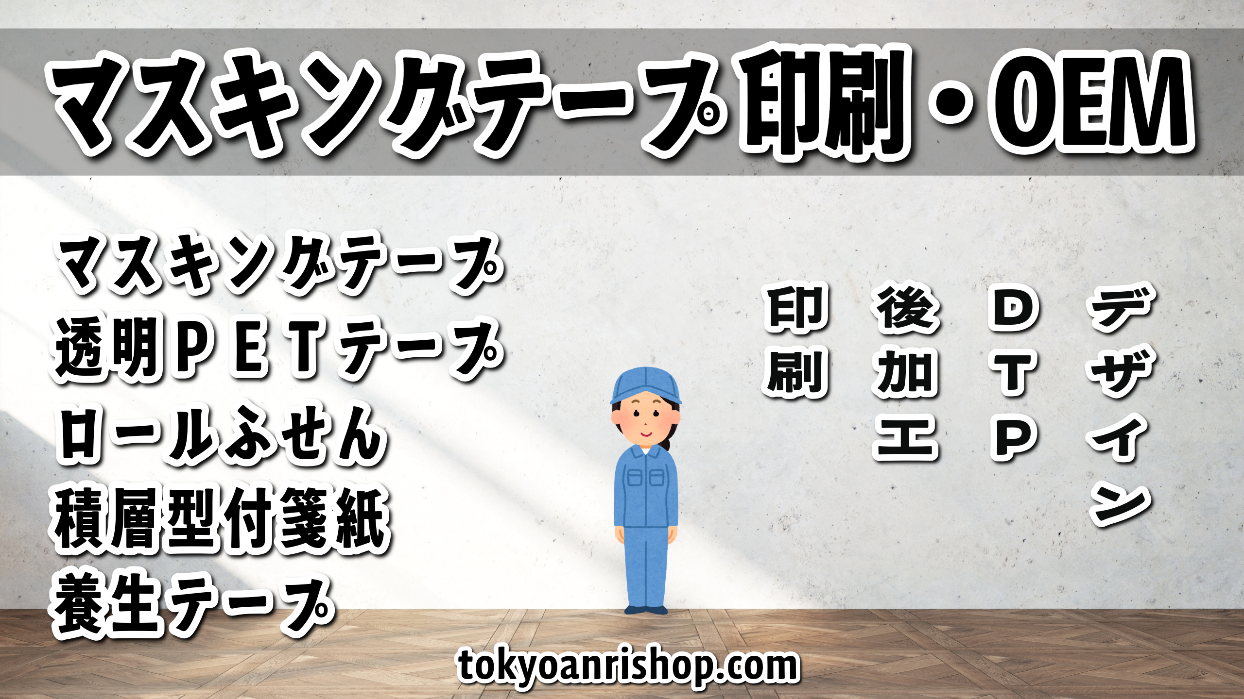 養生テープ作成が可能なステーショナリー制作会社の TOKYO ANRI SHOP(印刷会社アンリ) tokyoanrishop.com はOEM(Original Equipment Manufacturing)に関して実店舗での対面お打ち合わせが可能です!