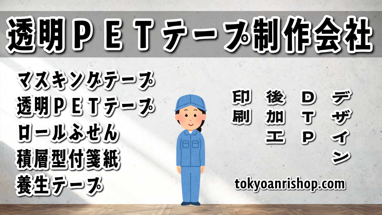 【透明PETテープ制作(OEM)が可能です。MADE IN JAPAN(日本製)オリジナル透明PETテープ印刷の印刷会社です】