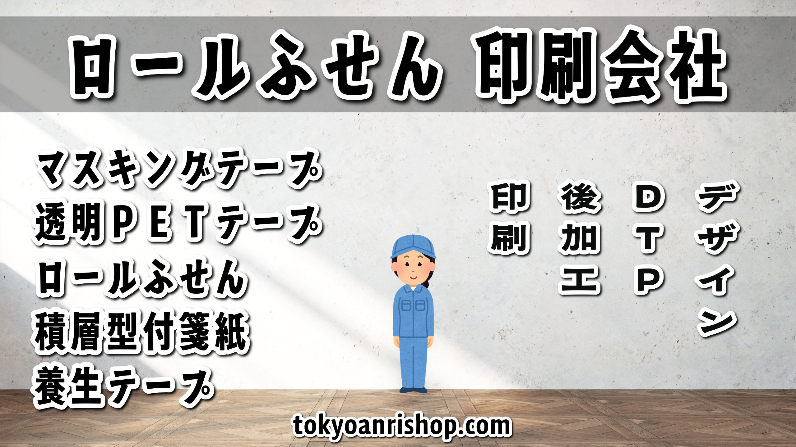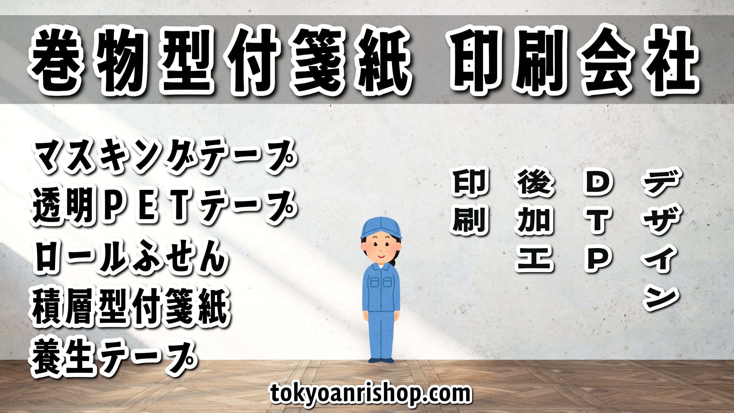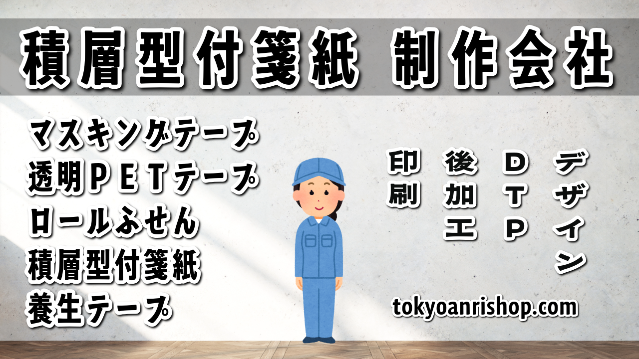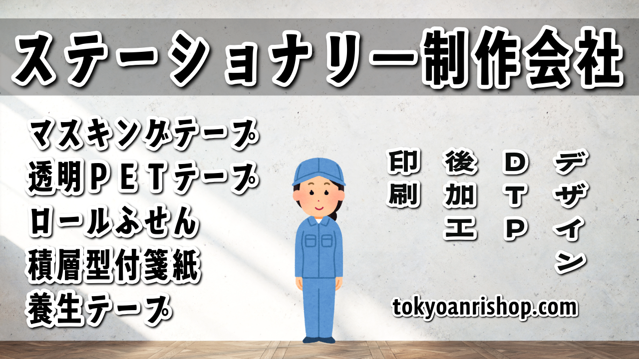 ステーショナリー制作なら tokyoanrishop.com へご相談ください。実店舗での対面相談可能(ロール付箋、マスキングテープ、透明PETテープ、養生テープ、積層型付箋のオリジナル印刷可能)