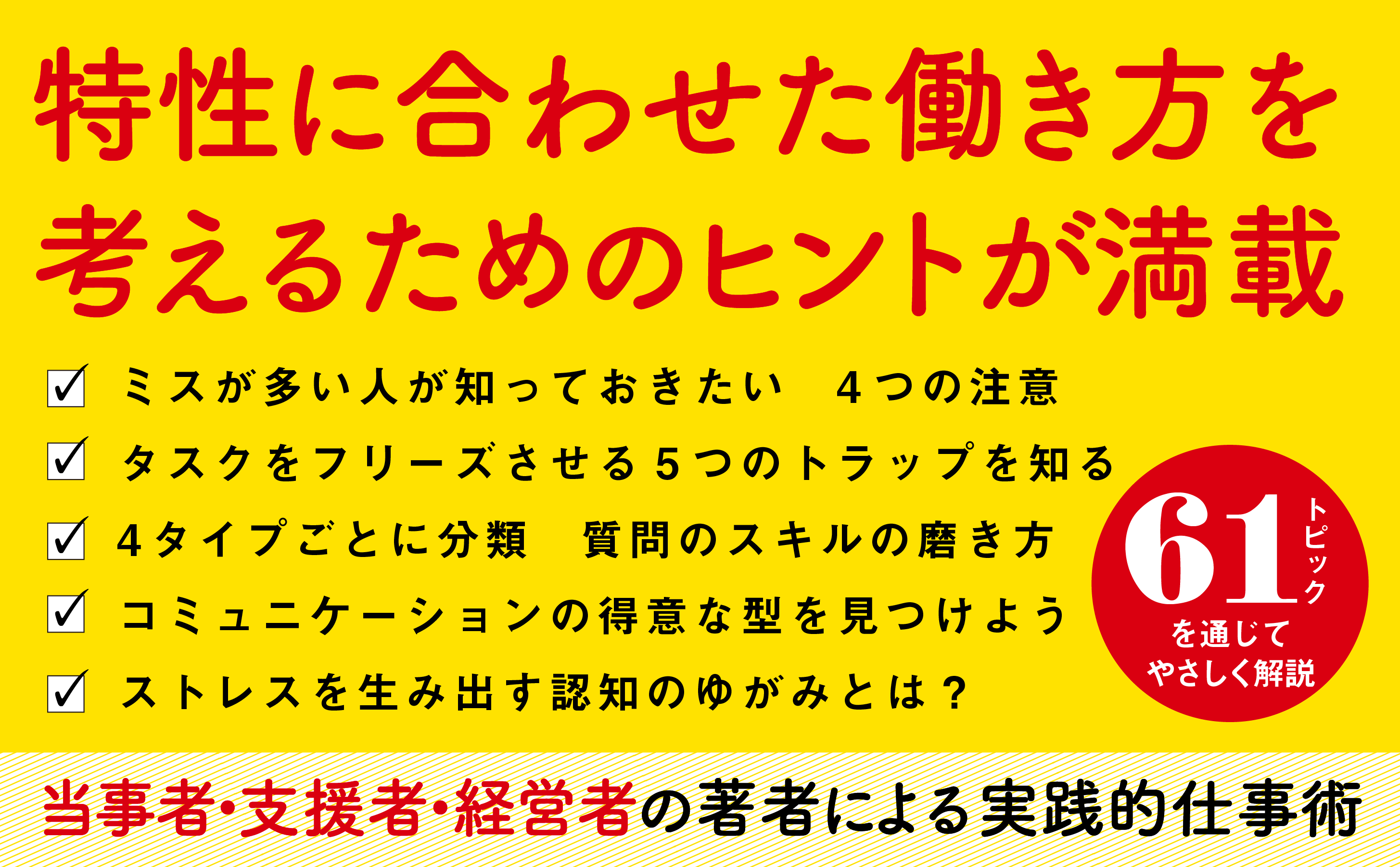 この考え方に基づいて、本書では「特性を理解し、効果的な対策を講じる方法」をお伝えしていきます。あなたに合った働き方を、一緒に考えていきましょう。