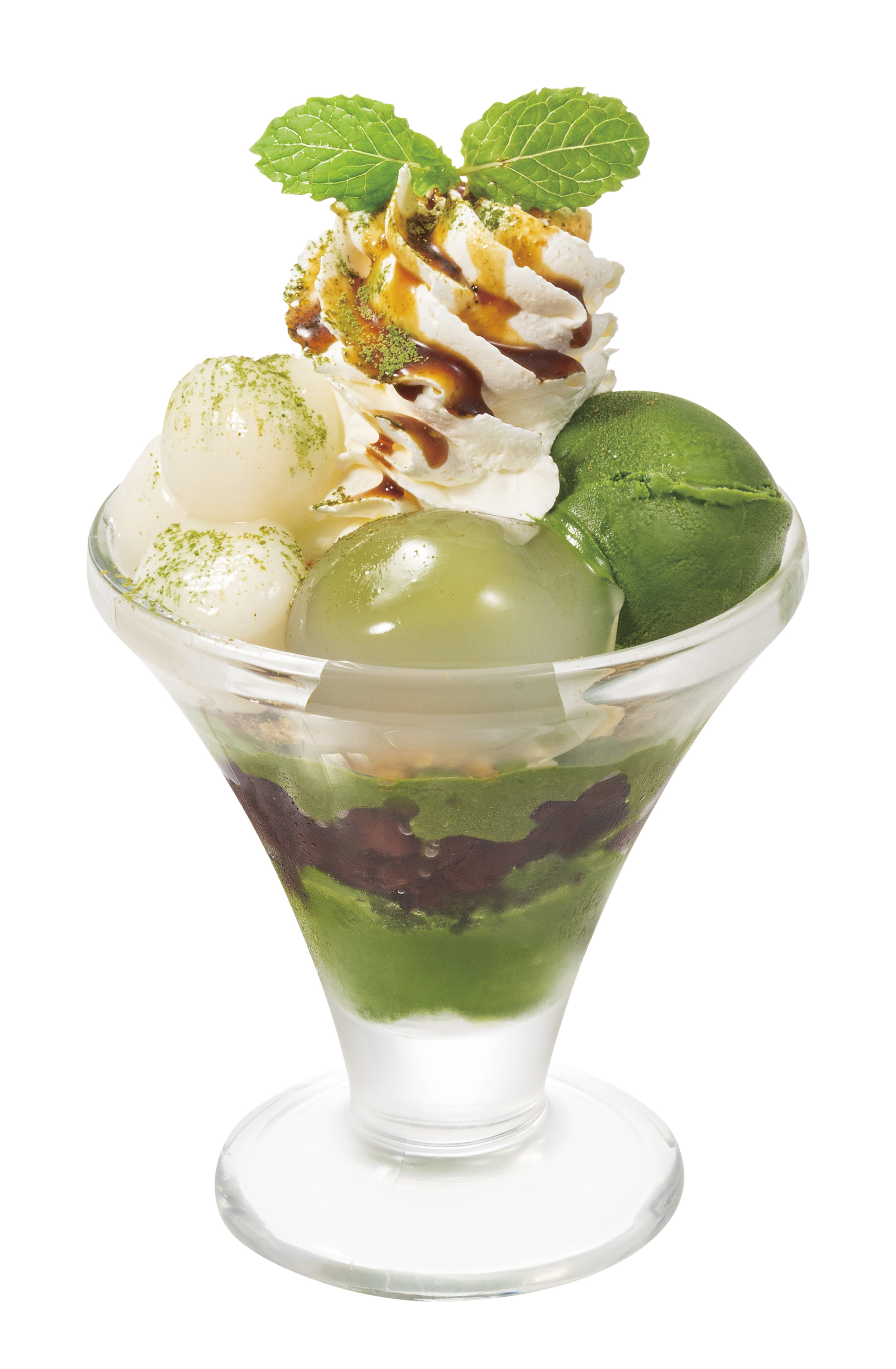 「抹茶デザート」は、石臼挽きの京都府産宇治抹茶を使用した濃厚な抹茶アイスと、宇治抹茶クリーム、北海道産ゆであずきを幾層にも重ねた「抹茶白玉のザ・サンデー」を始め、全3品を約200店舗で販売します。