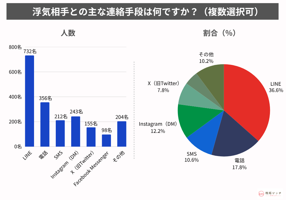 浮気相手との主な連絡手段は何ですか?(複数選択可)