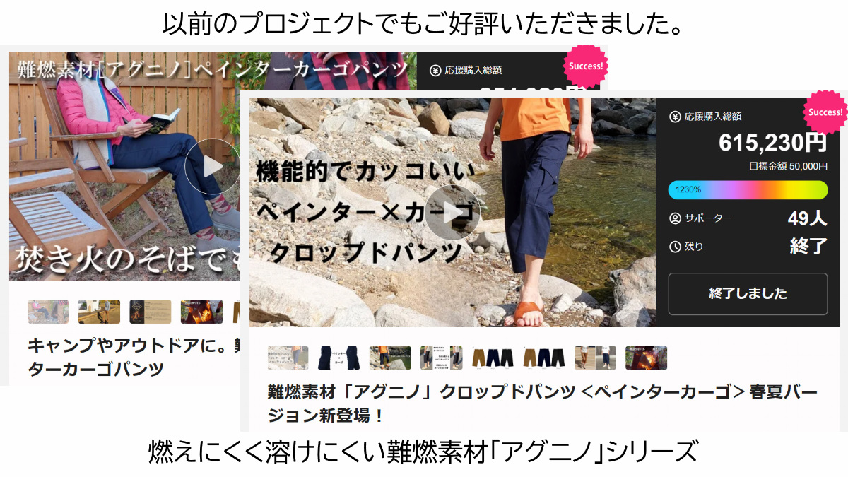株式会社ツースリー被服(本社:広島県福山市)では、この度、新製品の「難燃素材アグニノ ハーフパンツ」をリリースするにあたり、応援購入サービスの「Makuake」にて先行販売を行う事となりました。 5/26 12:00より先行販売価格にてご購入いただけます。