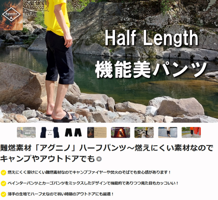 難燃素材「アグニノ」ハーフパンツ~燃えにくい素材なのでキャンプやアウトドアでも◎