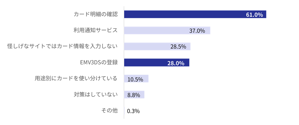 質問:クレジットカードの不正利用対策は何かしていますか?(複数回答)