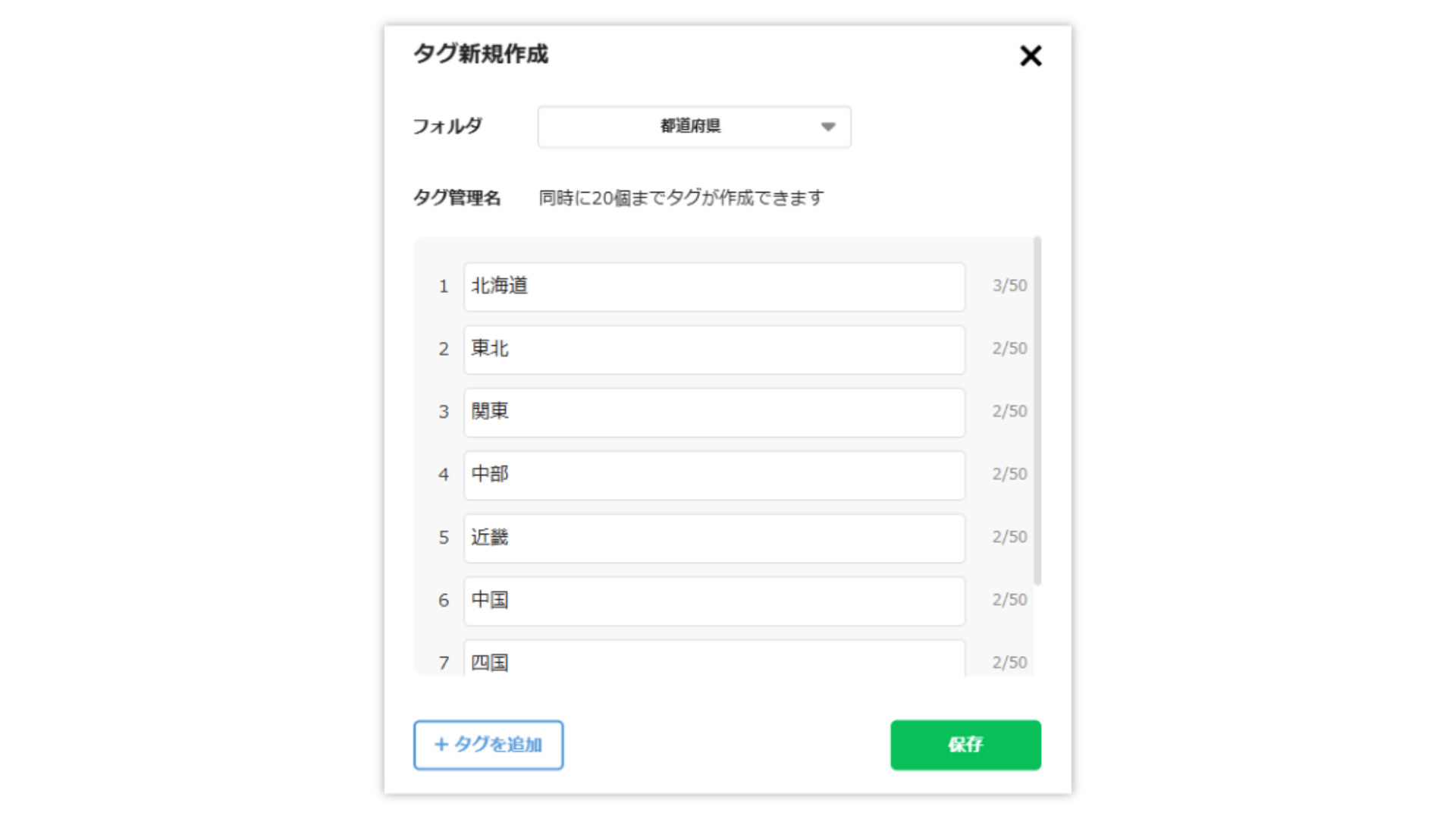 従来は一つずつタグを作成する必要がありましたが、一度に最大20個までのタグを一括で作成可能となり、初期設定や運用開始時の作業時間を大幅に短縮できます。