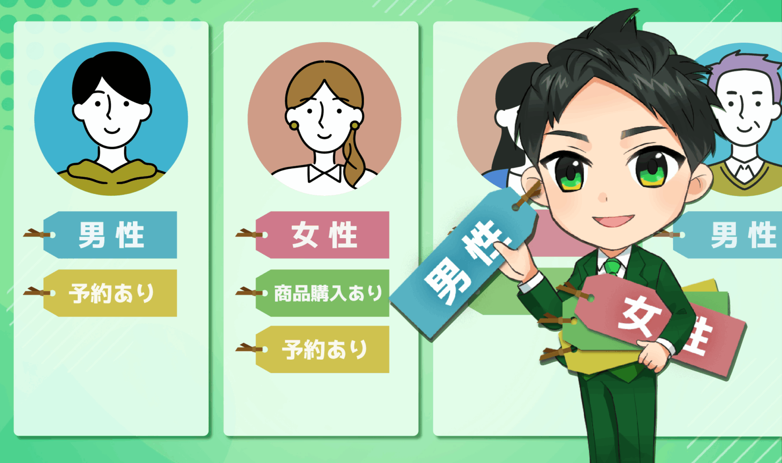 たとえば「20代」「セミナー参加者」などのタグを友だちに付けることで、特定のグループだけにメッセージを配信したり、タグが付いた時に自動でリッチメニューを表示させたりできます。