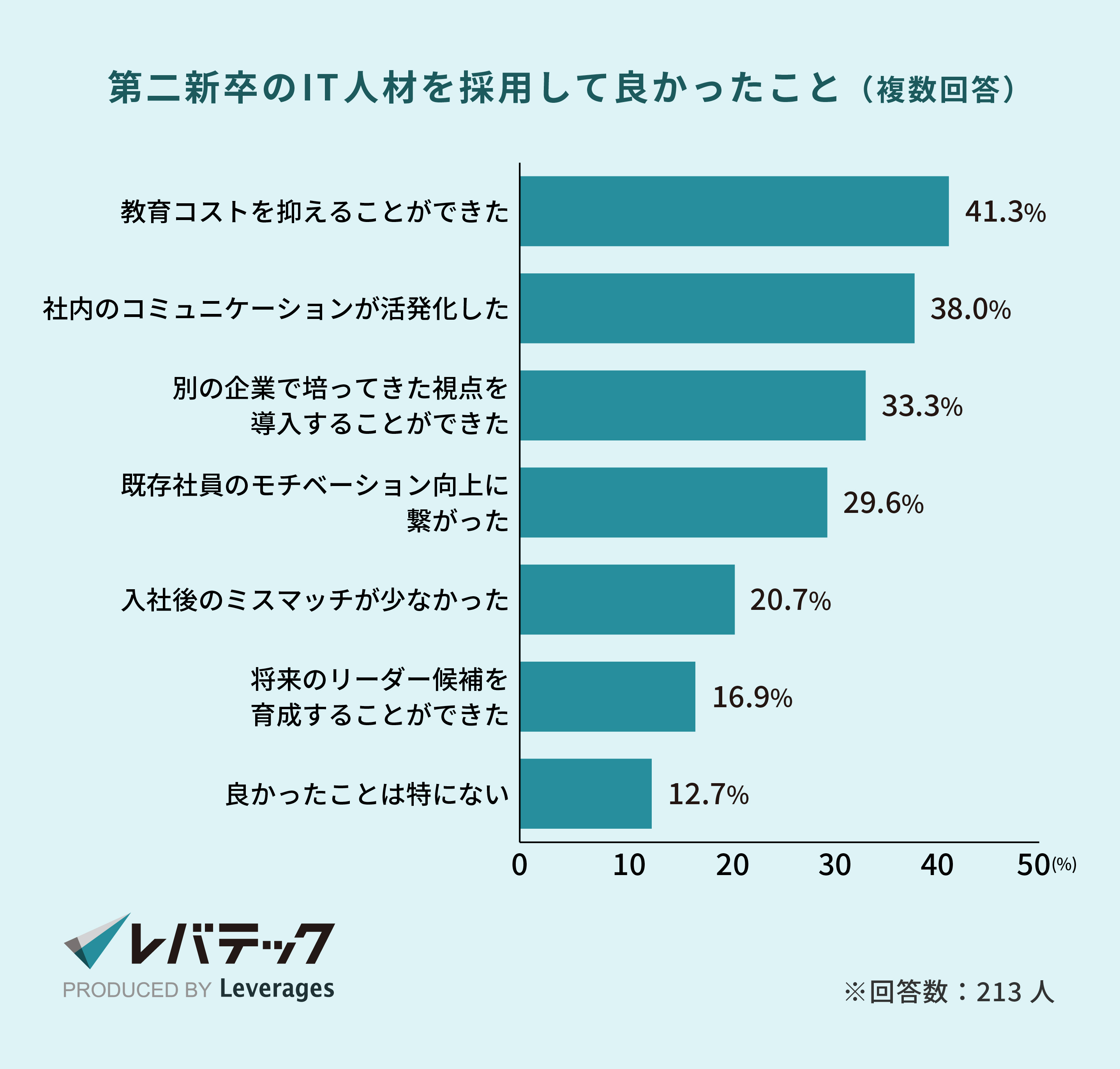 - 第二新卒を採用して良かった理由の1位は「教育コストを抑えることができた」