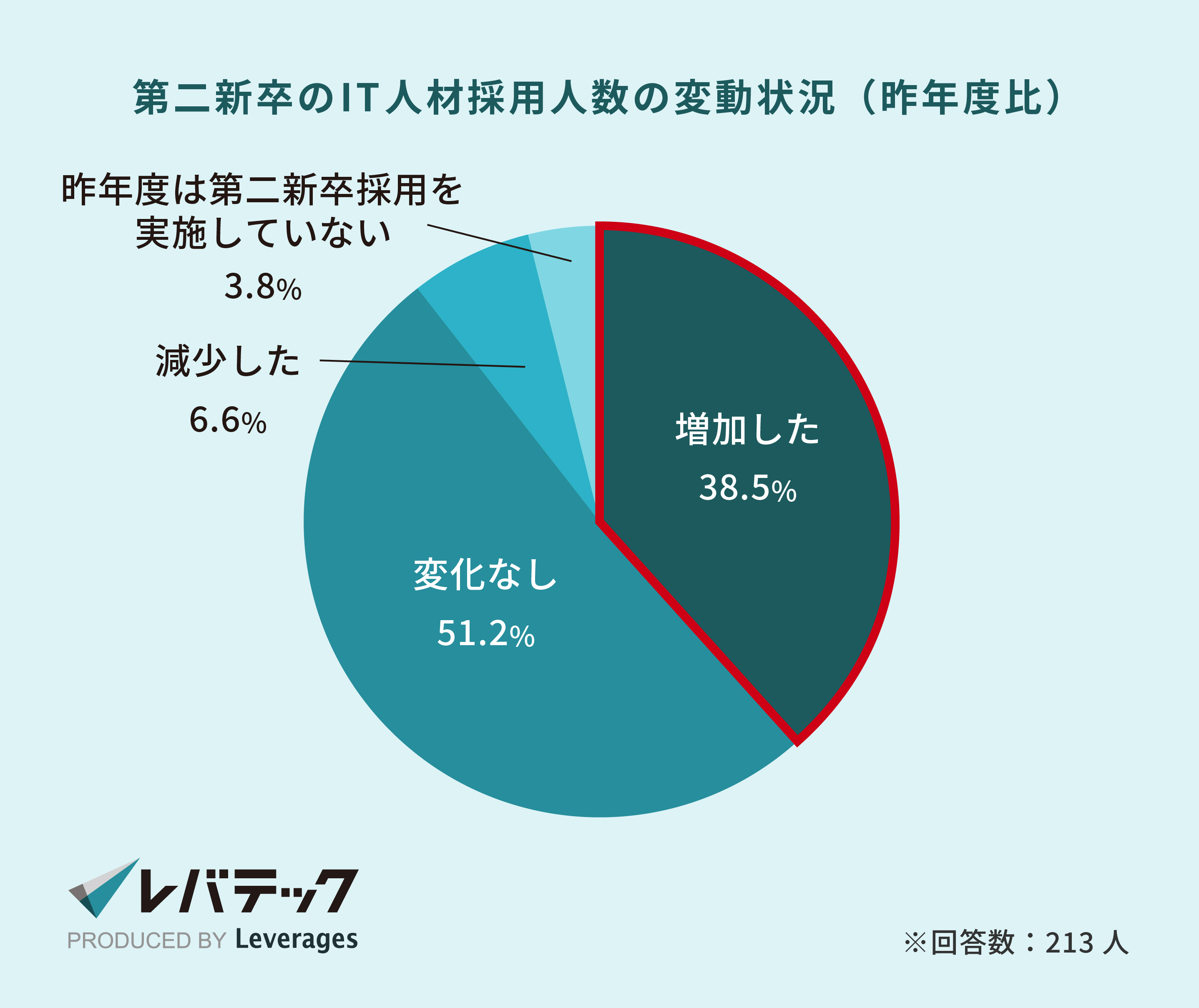 - 採用担当者の約4割が第二新卒のIT人材採用人数を「増加した」と回答