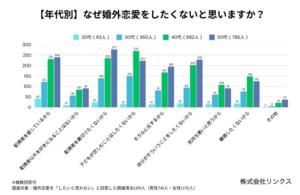 既婚者向けマッチングアプリ「既婚者クラブ」のユーザーを対象に、株式会社リンクス(東京都港区)が全国の20歳~59歳までの既婚男女3,000人を中心に、「婚外恋愛の実態調査」を実施しました。