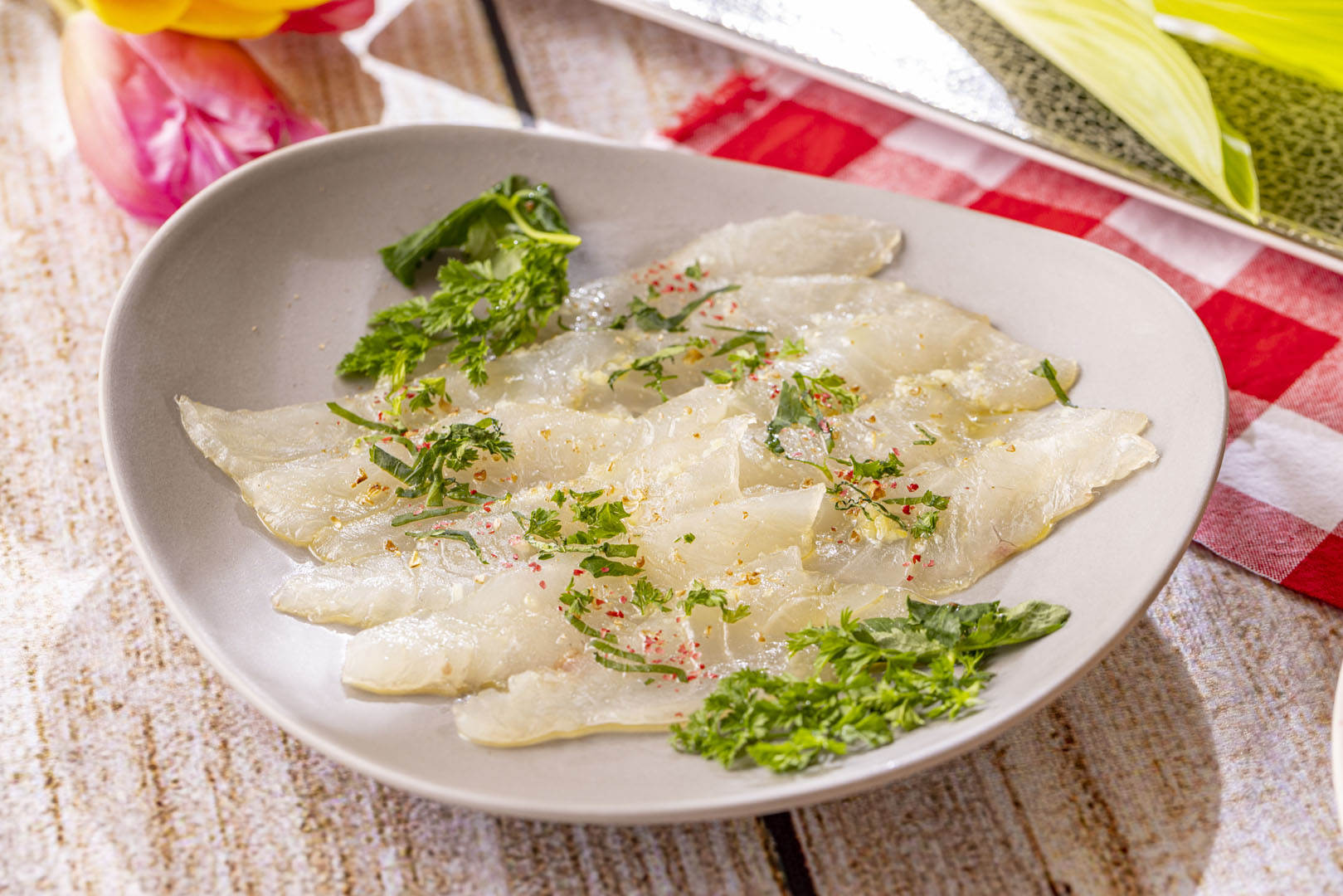 真鯛の塩レモンマリネ 三つ葉とセルフィーユ飾り(土日祝限定)
