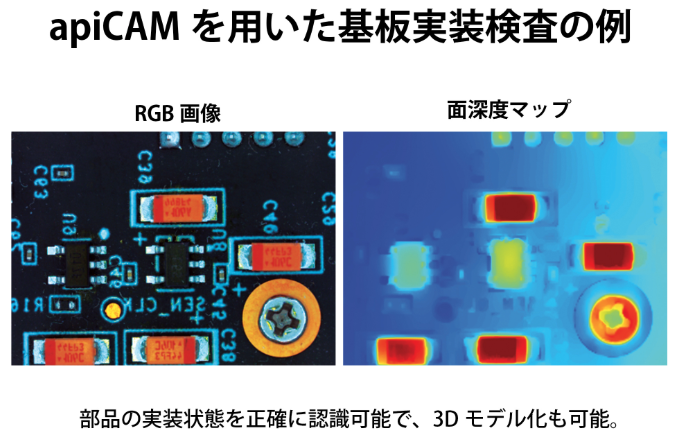 展示ブースでは「apiCAM」の実機デモにより、RGBイメージとデプスマップを同時にリアルタイム取得しながら、一度の撮影で取得した点群データから3Dモデルを作成するデモを含めて行う予定です。