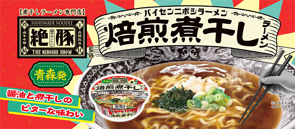 青森の『麺や絶豚(ゼットン)』監修のもと、お店の人気メニュー「深煎り焙煎煮干しラーメン」の味わいを再現しました。