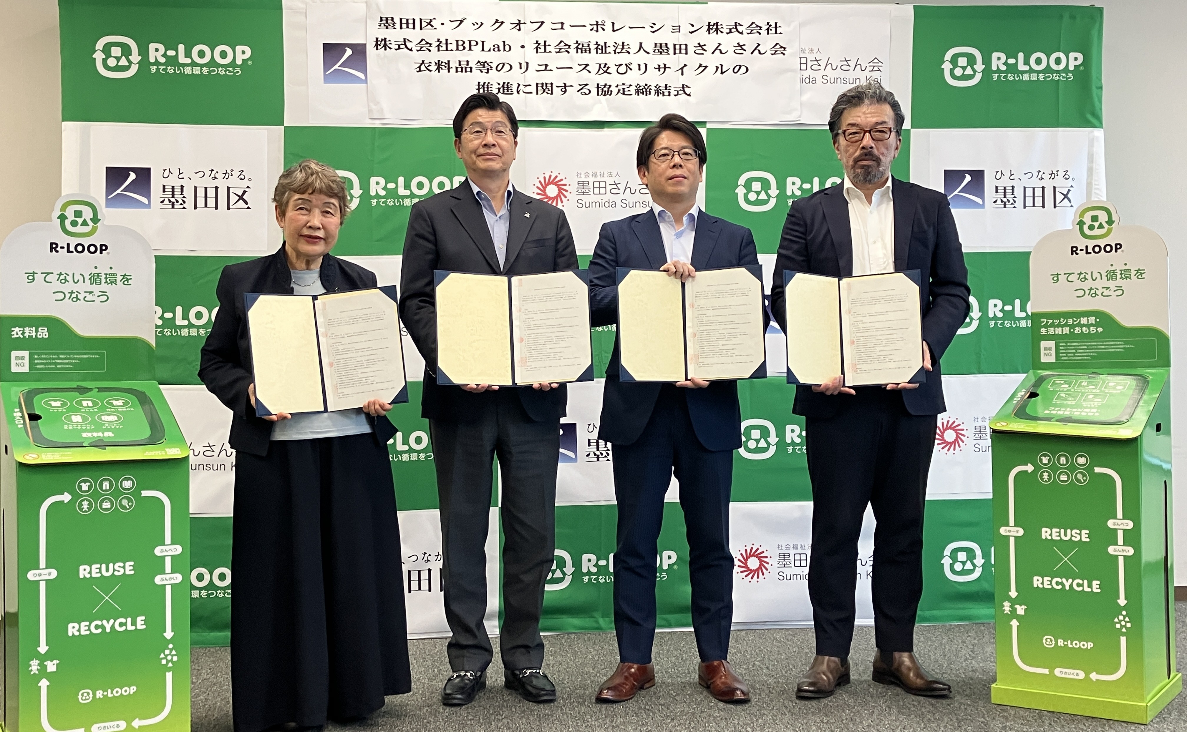 東京都の自治体初!墨田区、社会福祉法人墨田さんさん会、 ブックオフ、BPLabと不要品回収サービス「R-LOOP」を活用した 衣料品等リユース及びリサイクルの推進に関する4者連携協定を締結