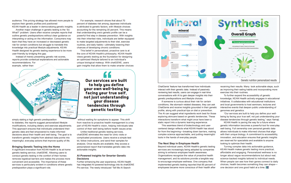 KEAN Health社が、アメリカで人気のビジネス科学誌にて 「アジアパシフィックにおける遺伝子検査トップ企業2025」を受賞