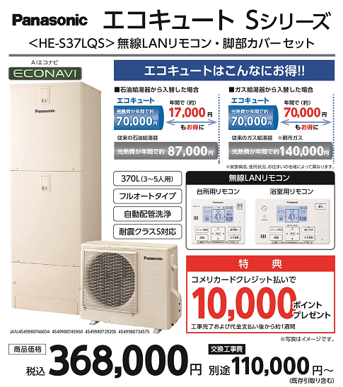 交換工事費(税込):別途110,000円~(既存引取り含む)