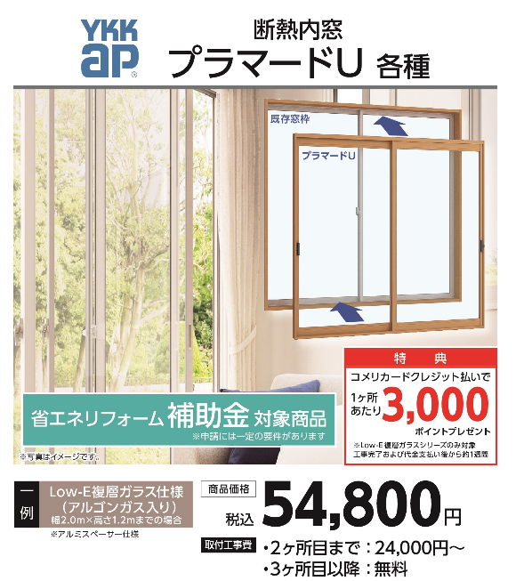 ・コメリカードクレジット払いで、1ヵ所あたり3,000ポイントプレゼント。