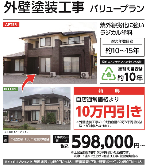 ※外装塗装工事のご成約合計69万8千円(税込)以上が対象となります。