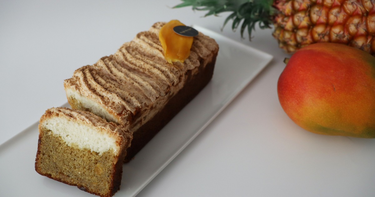 マンゴーやパイナップルなどのトロピカルフルーツを贅沢に生地へ練り込み、マダガスカル産タヒテンシス種バニラの華やかな香りとともに、しっとりと丁寧に焼き上げました。