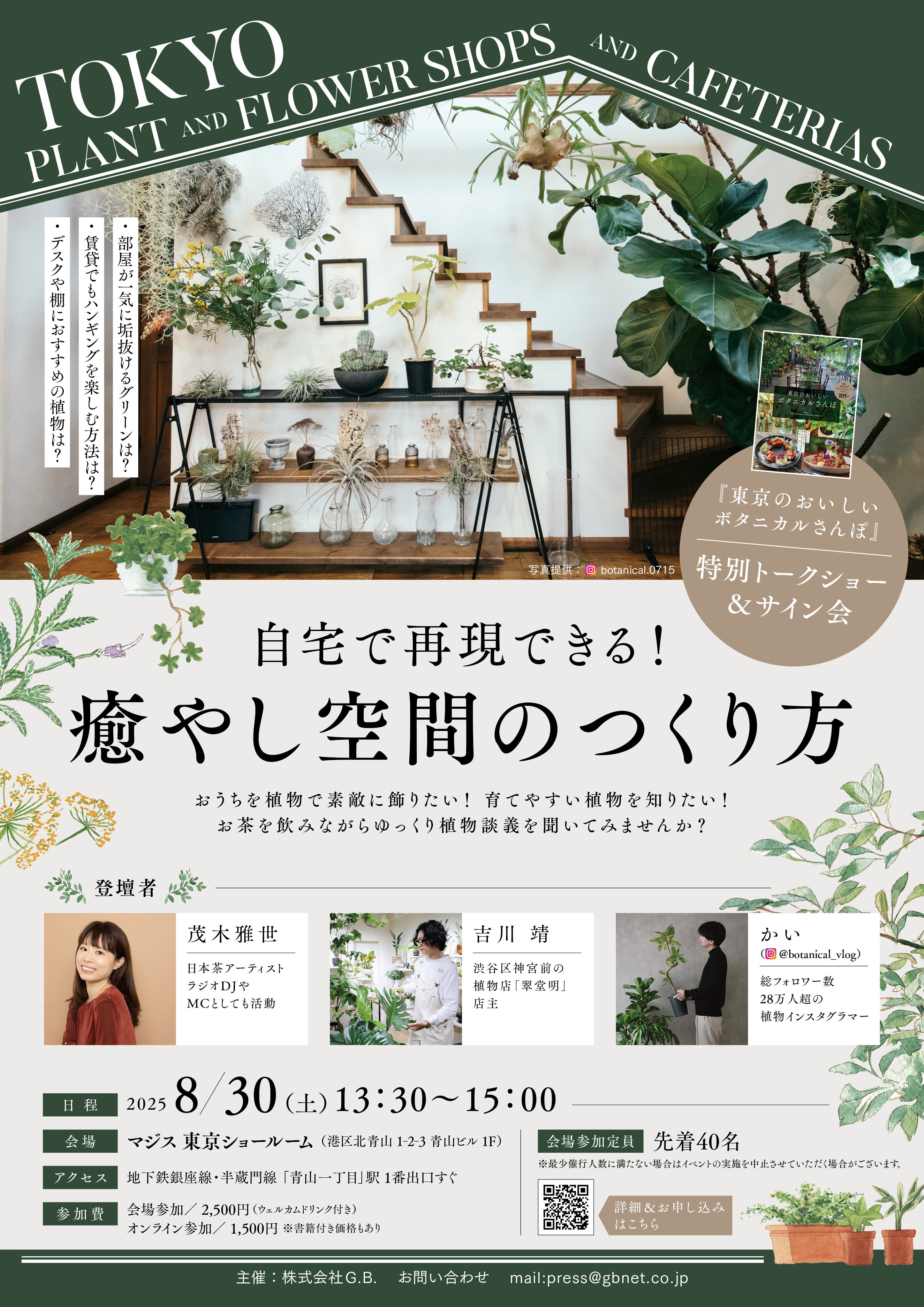 株式会社G.B.(東京都千代田区)は、『東京のおいしいボタニカルさんぽ』の発売を記念したイベントを開催いたします。イベントの詳細URL:https://tokyo-botanical.peatix.com/