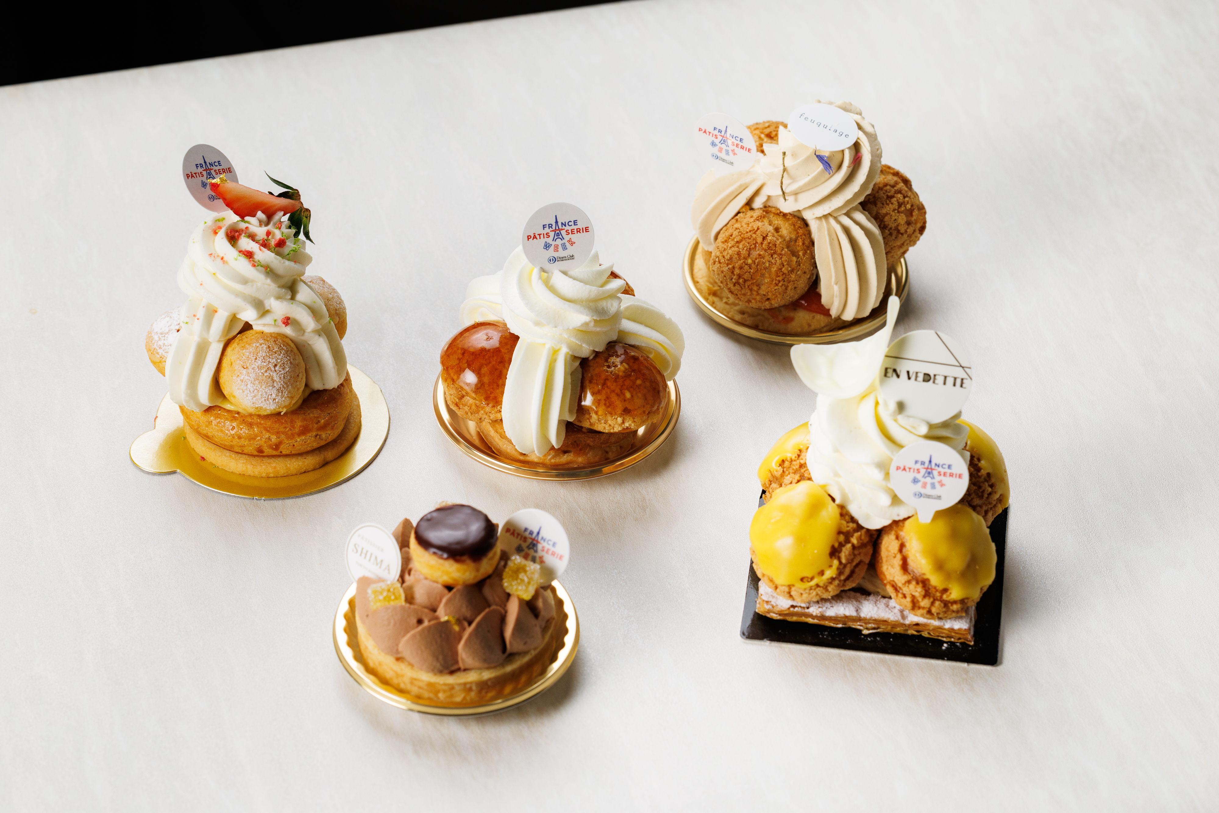 サクサクのパイ生地、ふんわりとしたシュー生地、舌触りなめらかなクリーム、カリッとしたキャラメル、一度に 4 つの食感が楽しめるのも「サントノレ」の魅力。伝統と創造性が詰まったこのお菓子は、今でもフランスのパティスリー文化を象徴する存在として、多くのシェフたちに愛され、現代的にアレンジされながら受け継がれています。(本イベントでは商品の価格は店ごとに自由設定)