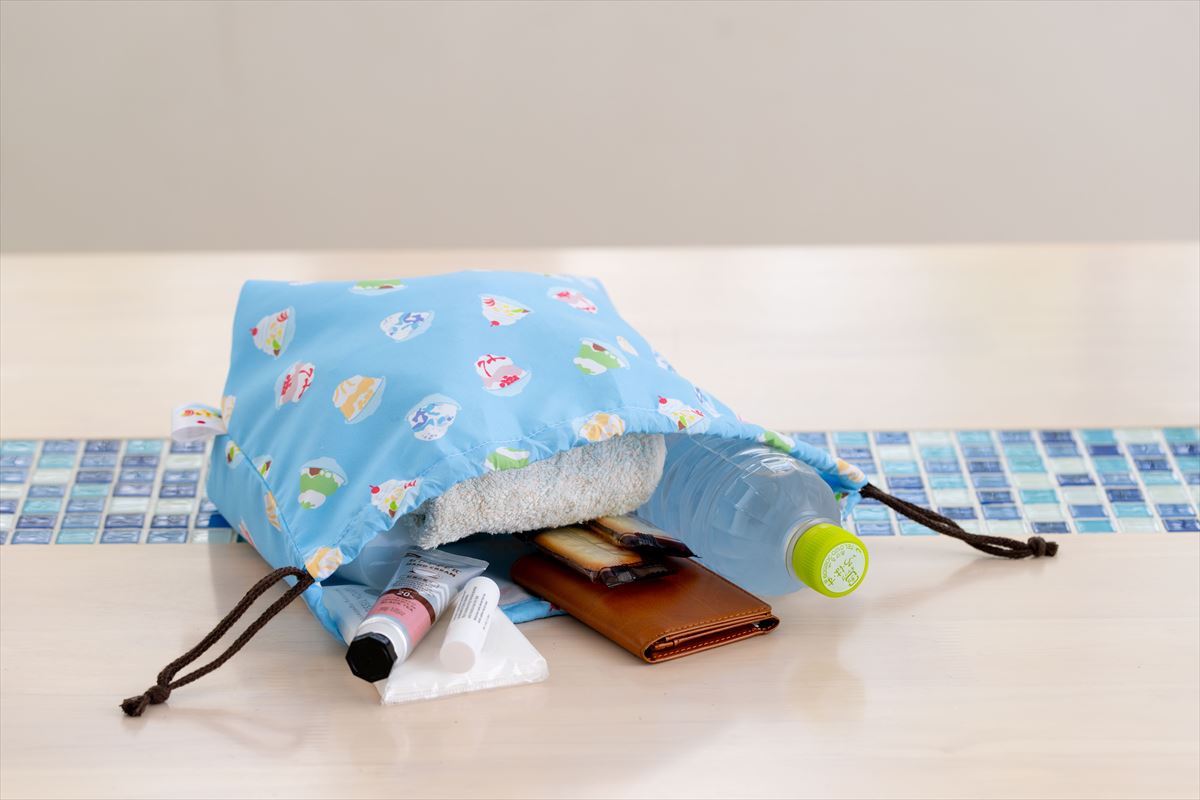お弁当を包んだり、着替えを入れたり、小物を収納したりするのに便利な程よい大きさで、様々な用途で活躍します。500mlのペットボトルも入るため、夏のお出かけやピクニックなどにも活用可能!