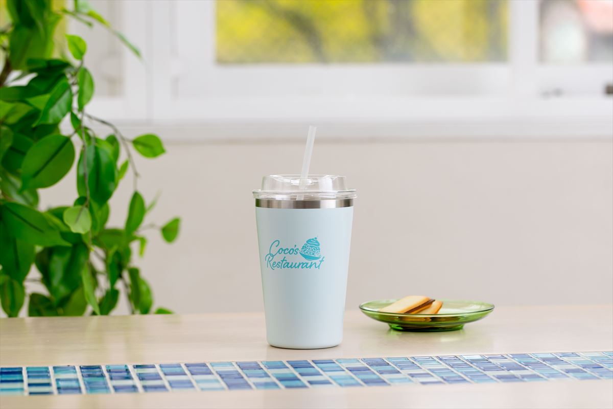 ココスの夏の風物詩“純氷ふわふわかき氷”の“純氷”をイメージした、爽やかなアイスブルーのステンレスタンブラーです。タンブラーとしてはもちろん、カップホルダーとしてもご使用いただけます。