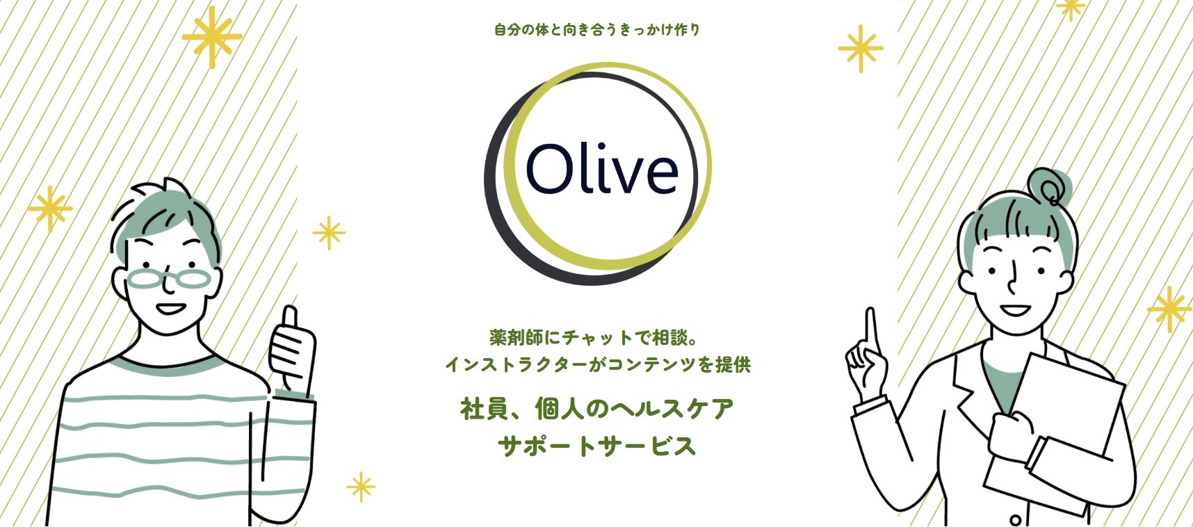 ウェルビーイングサービス「Olive」 は、チャットで気軽に薬剤師へ健康相談ができるコンテンツや、eラーニング、動画、コラムなどのコンテンツを提供し、ウェルビーイングに貢献するサービスです。企業が働き方改革の一環として社員の健康に対してサポートする必要性があるという考えのもと、企業と地域薬剤師を繋げる福利厚生サービスとして2021年12月に誕生しました。企業が社員への福利厚生として導入いただけるほか、個人での登録、利用も可能なサービスとなっていますので、勤務先等で前述のような福利厚生サービスが無い方も、個人単位で利用することができます。