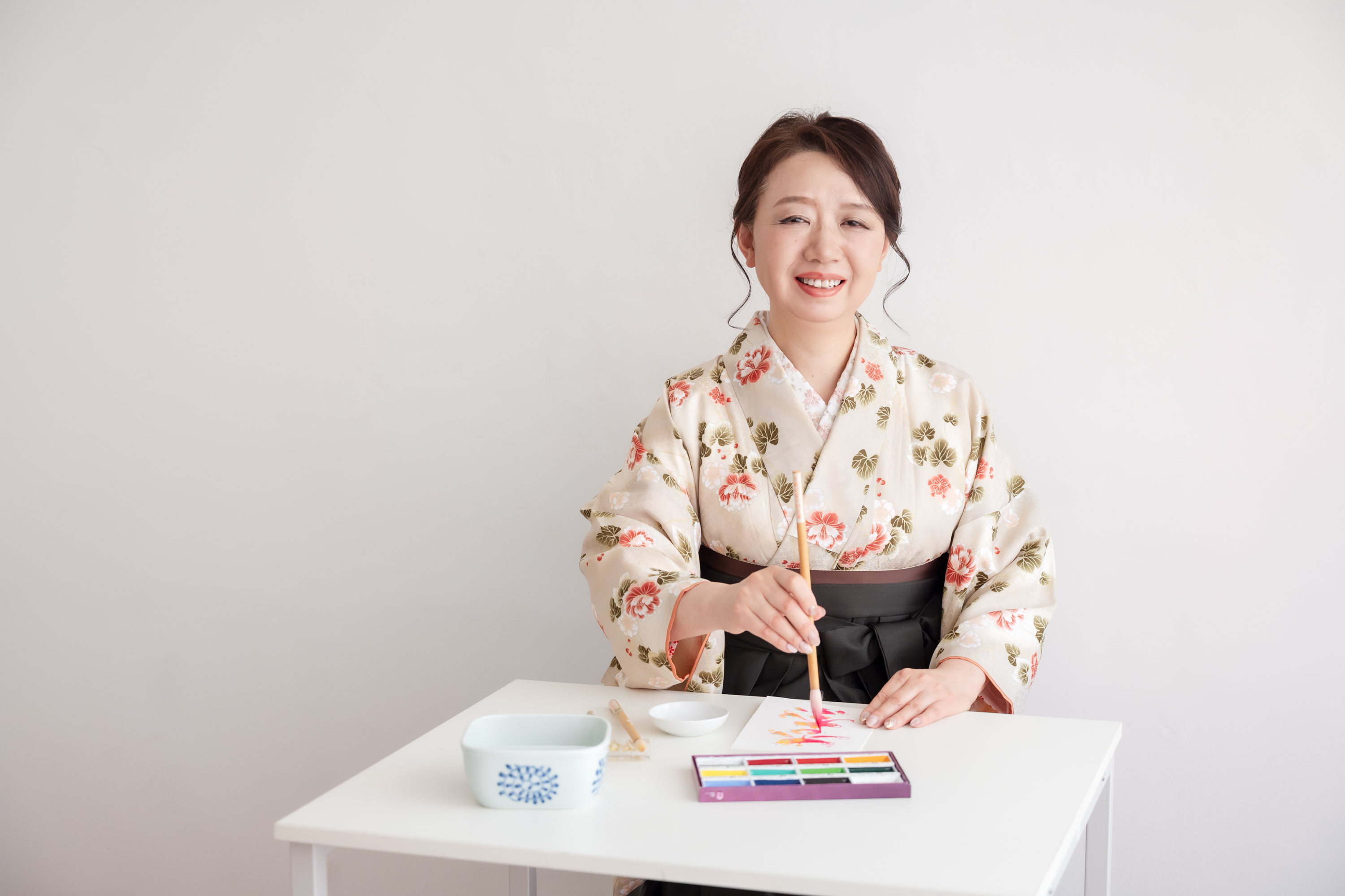 「彩り文字アーティスト養成講座」は、筆と顔彩(がんさい)を使い、自分の想いや言葉に“色”を添えて表現する、新しい文字アートのオンライン講座です。