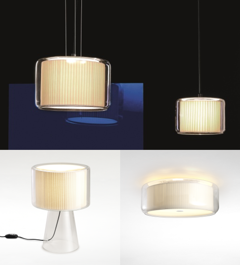 透明な吹きガラスの中に、軽やかなセードが浮かび上がる「Mercer」。セードには、ナチュラルなプリーツ加工を施したホワイトコットンを使用しています。シリーズの中でもシーリングタイプは、天井面にやわらかな光を広げ、空間全体に温かみのある雰囲気をもたらします。