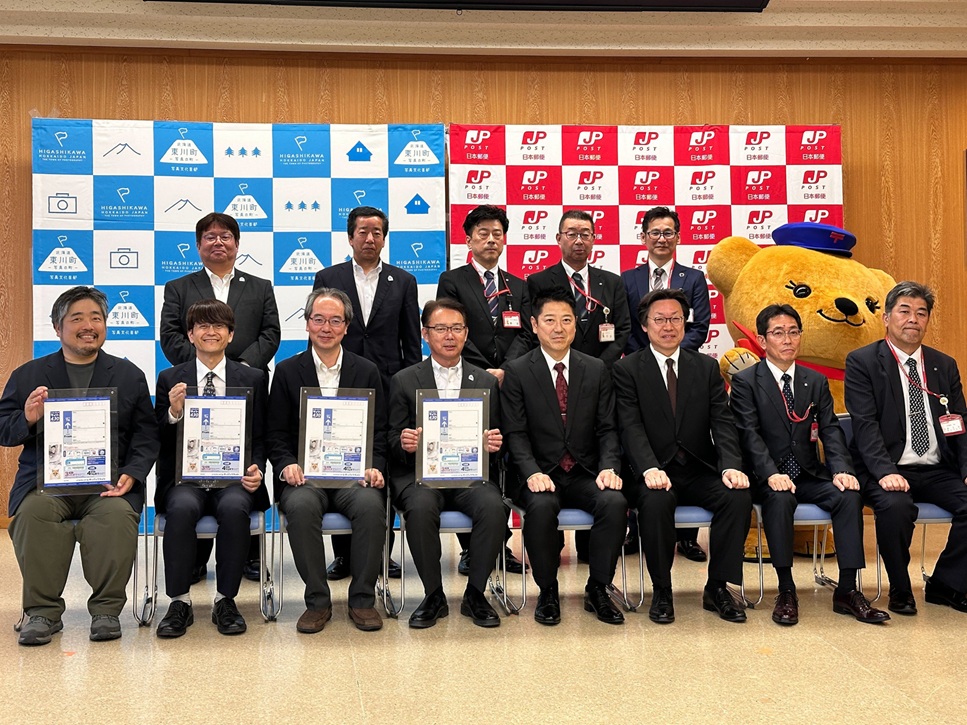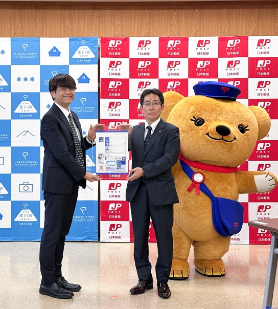 東川町役場にてレターパックの贈呈式を実施—— “写真の町”東川町の風景が入った特別デザイン販売記念