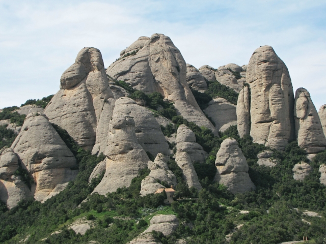 「モンセラット」とは、カタルーニャ語で「のこぎり山」を意味し、その名の通りギザギザとした岩山のシルエットが特徴の神秘的な場所ですバルセロナから約1時間の距離にあり、標高は約1,200m。地元の人々からも「聖なる山」として長年敬われてきました。