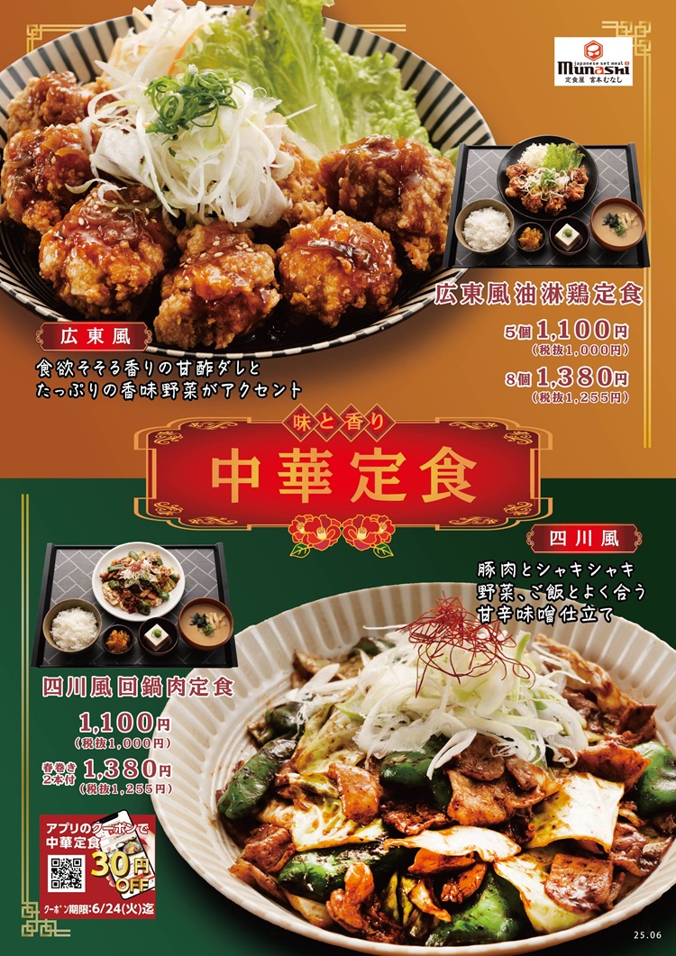 M&Sフードサービス株式会社(本社:大阪府大阪市、代表取締役社長:夏井 克典)が運営する定食チェーン「定食屋 宮本むなし」では、中華定食フェアとして「広東風油淋鶏(ユーリンチー)定食」「四川風回鍋肉(ホイコーロー)定食」を2025年6月11日より期間限定で販売いたします。ごはんとの相性抜群のおいしさと香りを、この機会にお楽しみください。