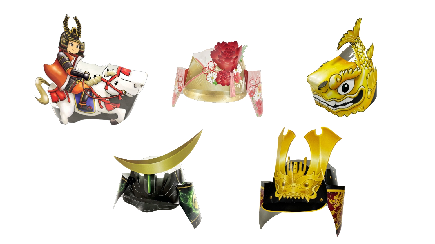親子で作って遊べる「なりきり武将キャップ」は、定番のカッコイイ兜から女の子向けのカワイイ兜、個性的な金シャチ兜など全部で5種類あります。自分で作った兜を被り館内を探検すれば、気分は戦国武将!