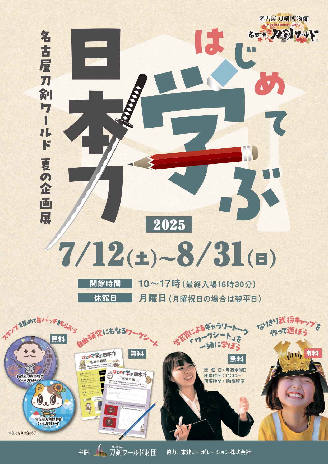 名古屋刀剣博物館「名古屋刀剣ワールド」(愛知県名古屋市、以下当館)では、2025年7月12日(土)~8月31日(日)の期間中、夏の企画展「はじめて学ぶ日本刀」を開催いたします。学芸員によるこども向けの解説やプレゼントがもらえるスタンプラリーなど、はじめて刀剣の世界にふれるお子さまにも楽しんでいただける企画展となっております。