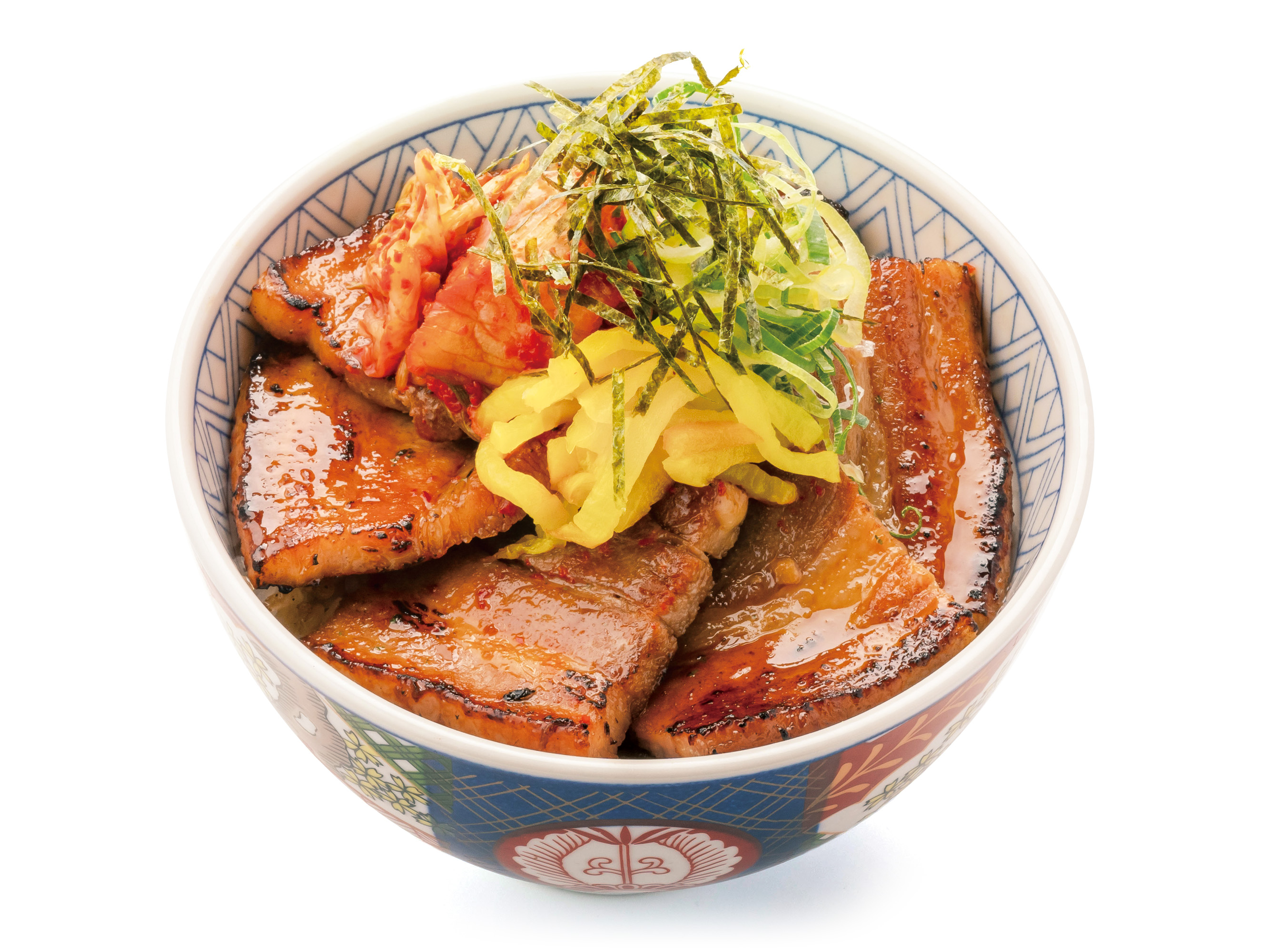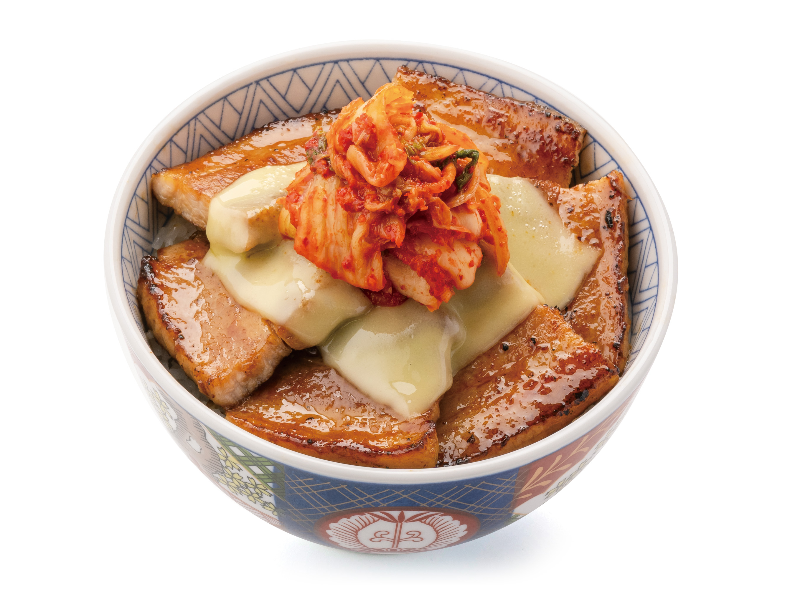 当店自慢の豚バラ丼に、ピリ辛キムチとトロ〜リチーズをプラス。食べ応え満点の一品に仕上げました。