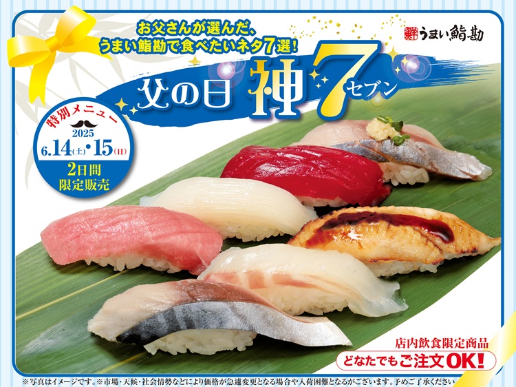 【うまい鮨勘】6/14(土)・15(日)は「父の日」イベント開催!毎年大好評の「父の日 神7(かみセブン)」が再登場!
