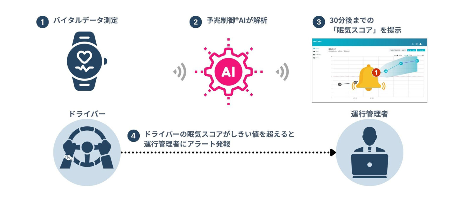 また、アドダイスも物流業界における人手不足に着目し、眠気の予兆を捉える「眠気スコア」を予兆制御AIに実装して、物流・旅客分野における健康起因事故の予防を目指しています。