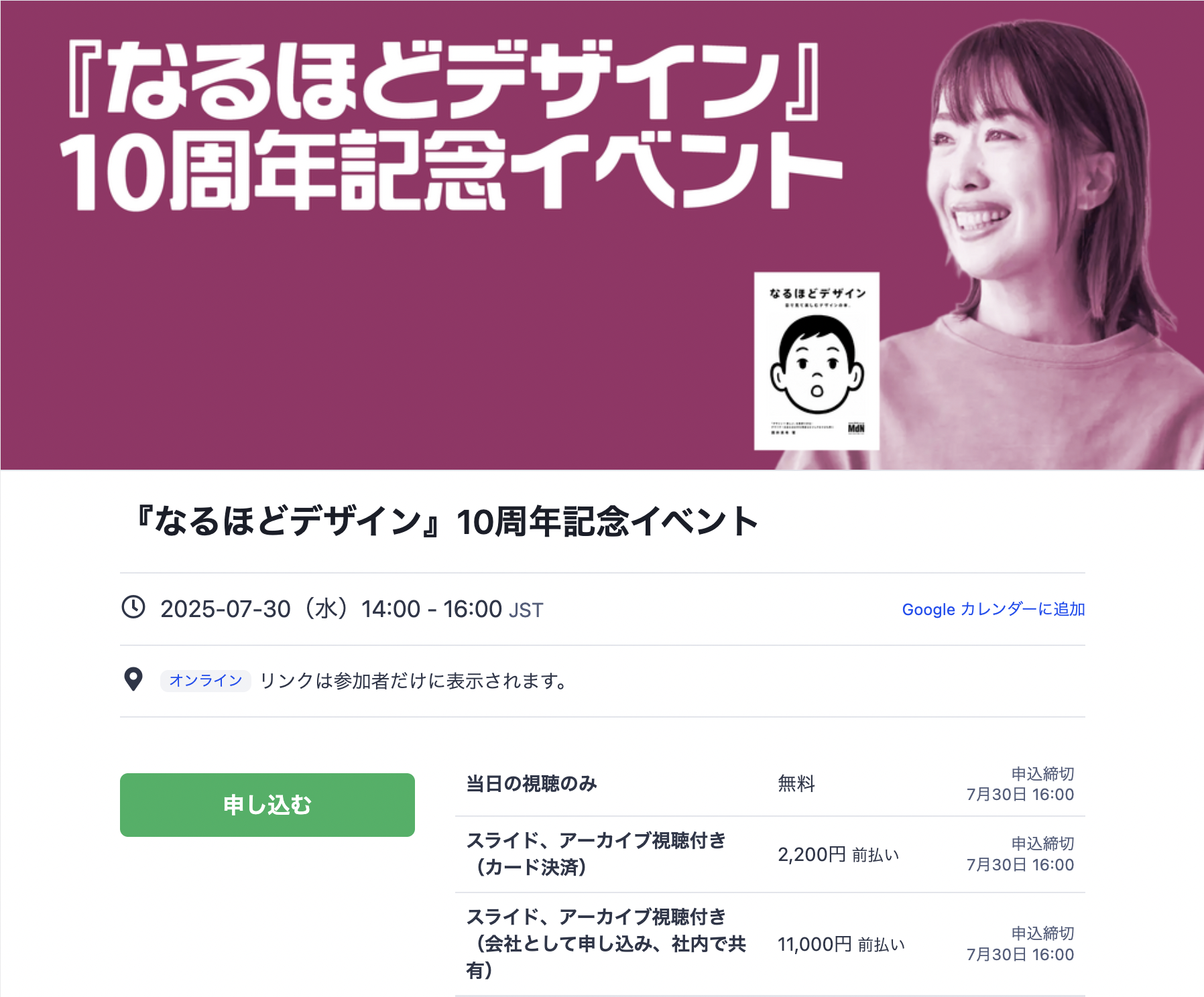 さらに『なるほどデザイン』10周年記念イベントの開催も決定。著者の筒井美希さんによるトークイベントをYouTube Liveでライブ配信いたします。